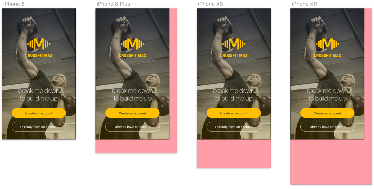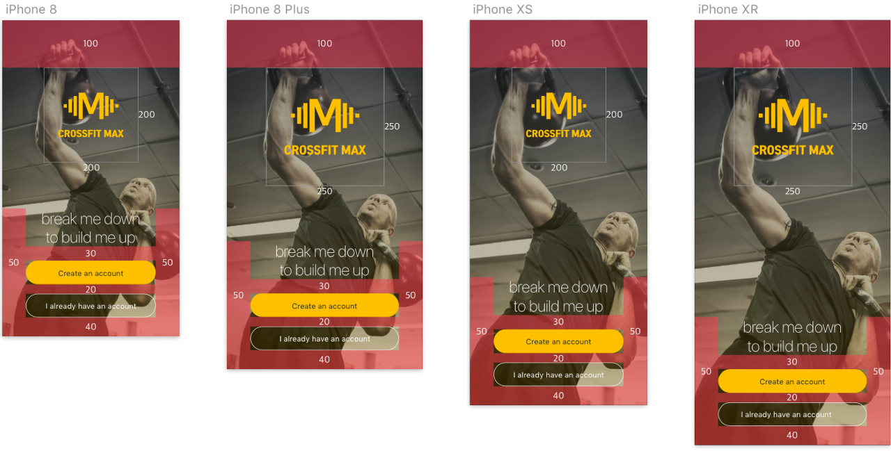 기기의 크기에 따라서 버튼 혹은 이미지 크기가 달라지는 방식이다. 페이스북 인스타그램처럼 콘텐츠가 무한히 나타나는 것이 아닌, Welcome 스크린처럼 크기가 고정된 스크린에서 유용한 대응방식이다. "큰 화면(Plus, XR)에서는 로고 이미지도 200x200이 아닌 250x250으로 크게 대응해주세요"와 같은 커뮤니케이션이 가능하다.